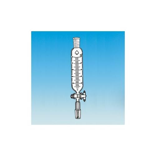 Cylindrical with joint at top and bottom, drip stem, and double scale graduations, calibrated from stopcock. Drip stem does not extend beyond the joint, thereby eliminating a possible source of breakage. PTFE stopcock plug.