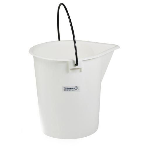 Graduations (liters) are molded into the interior of the pail . A recessed hand grip is molded into to the base to help control pouring. Heavy duty polyethylene.