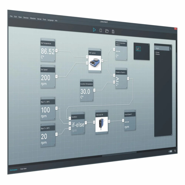 Visc software enables the automation of laboratory processes by connecting ROTAVISC viscometers to other devices, such as a thermostat, through a PC. Measurement processes and parameters can thus be easily recorded for analysis and documentation. In addition, users can e.g. monitor and control the sample temperature and pH measurement.