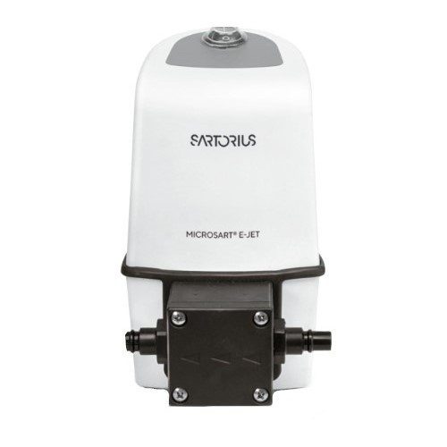 The Microsart e.jet is a vacuum laboratory pump able to create sufficient vacuum for vacuum filtration and simultaneous transfer of the filtered liquid to waste. The Microsart e.jet Transfer Pump is ideal for sample filtration in Microbiology achieving a trans membrane pressure of 600 mbar and a flow rate of > 3.5 Nl/min (3.5 Normliters water displacement by air in one minute). Constant flow rates and a defined maximum vacuum guarantee smooth and reliable filtration.Until now vacuum equipment for the Membrane Filtration Method consists of numerous parts including connectors, tubes, vacuum containers, protection filter, Woulff's bottle and a vacuum pump. After several samples, the vacuum must be broken to empty the filtrate collection container. The complete traditional equipment requires far more laboratory space and is time consuming to operate and maintain. The Microsart e.jet Transfer Pump greatly reduces operating complexity.The Microsart e.jet pump is an ideal accessory for 3-branch and 1-branch manifolds. Compared to traditional equipment, Microsart e. jet and stainless steel manifold require only 30% of the average space-meaning in particular less congestion working in Laminar Flow Cabinets.Traditional vacuum pumps often lose their efficiency and capability to generate sufficient vacuum, when liquid is drawn into the pump head. The Microsart e.jet is designed to pump both gas and liquids, meaning no loss of efficiency or malfunctions from water drawn into the pump head.